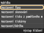 Všechna nastavení týkající se faxování jsou uvedena s krátkým popisem. Výchozí nastavení jsou označena křížkem (