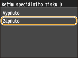 Pokud se problém nevyřeší ani po nastavení této položky, nastavte <Režim speciálního tisku D> na <Zapnuto>. Režim speciálního tisku D