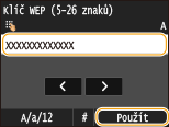Pomocí číselných tlačítek zadejte síťový klíč a klepněte na tlačítko <Použít>.