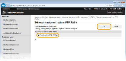 Zaškrtněte políčko [Použít režim FTP PASV] a klikněte na tlačítko [OK].