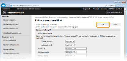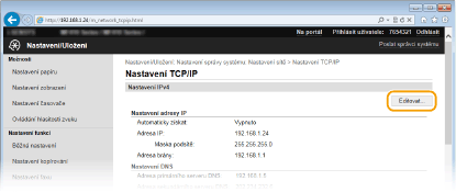 Klikněte na tlačítko [Editovat] v části [Nastavení IPv4].