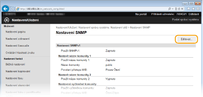 Nastavení SNMP lze povolit či zakázat z nabídky <Nabídka>. Nastavení SNMP