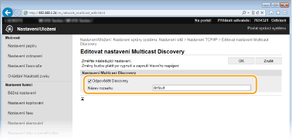 Klikněte na tlačítko [Editovat] v části [Nastavení Multicast Discovery].