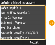 . Změníte-li tato výchozí nastavení podle často prováděných operací, nebudete muset provádět stejná nastavení při každém tisku.