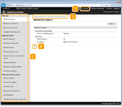 Zobrazí se stránka [Nastavení/Uložení]. Pokud jste přihlášeni v režimu správce systému, můžete měnit nastavení položek a ukládat/načítat registrovaná data.