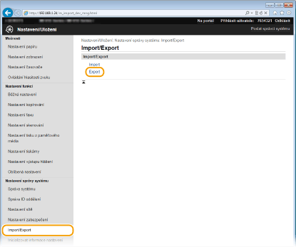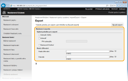 Pokud zaškrtnete políčko [Adresář (ABK)], nemůžete exportovat nastavení zařízení zároveň s daty z adresáře.