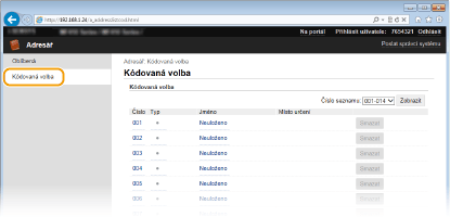 Uložení míst určení v adresáři prostřednictvím Vzdáleného uživatelského rozhraní