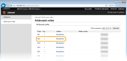 Kliknutím na příslušné textový odkaz pod položkou [Číslo], [Typ] nebo [Jméno] lze upravit již uloženou položku.