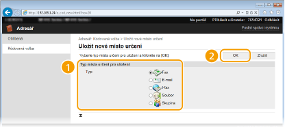 Vyberte možnost [Typ místa určení pro uložení] a klikněte na tlačítko [OK].