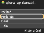 Naskenovaná data jsou odeslána do paměťového zařízení USB.