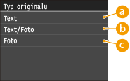 Můžete vybrat obrazovou kvalitu skenování podle typu dokumentu, například dokumenty obsahující pouze text, dokumenty s nákresy nebo grafy, nebo fotografie z časopisu.