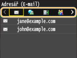 Místa určení lze zadat z adresáře jejich výběrem ze seznamu uložených míst určení nebo jejich vyhledáním podle jména, pokud je k místu určení přiřazeno jméno příjemce.