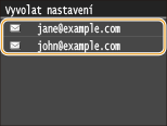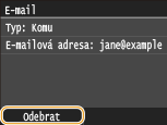 Pokud je možnost <Omezit odesílání z výpisu> nastavena na hodnotu <Zapnuto>, tuto funkci nelze použít. Zákaz použití naposledy použitých míst určení