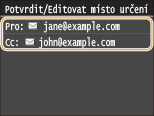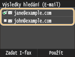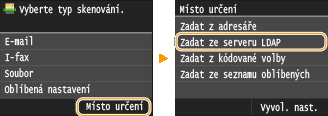Pokud máte v kanceláři nainstalován server LDAP, můžete pomocí informací o uživateli vybrat místa určení uložená na tomto serveru. Získejte přístup k serveru LDAP prostřednictvím zařízení pro hledání vhodných informací o uživateli a zadejte ho jako místo určení.