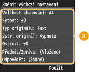 Vyberte položku, kterou chcete nastavit, a změňte výchozí hodnotu.