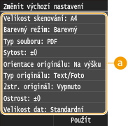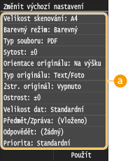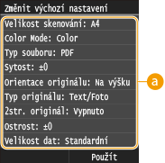 . Tato výchozí nastavení můžete upravit tak, aby lépe vyhovovala operacím, které nejčastěji provádíte. Nebudete tak muset zadávat opakovaně stejná nastavení před každým skenováním.