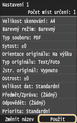 Zkontrolujte podrobnosti nastavení, která chcete uložit, a klepněte na tlačítko <Použít>.