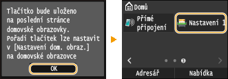 Pokud vyberete možnost <Ano>, zobrazí se zpráva. Zprávu si přečtěte a potom klepněte na tlačítko <OK>. Kombinace uložených nastavení bude přidána na obrazovku Domů jako tlačítko zástupce.