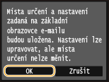 Po uložení nastavení nelze měnit místa určení. Chcete-li změnit místo určení, nastavení odstraňte a potom je uložte znovu.