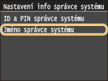 ![]() Ve výchozím nastavení je uloženo ID správce systému a kód PIN „7654321“. Z bezpečnostních důvodů doporučujeme toto nastavení změnit.