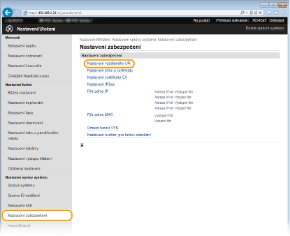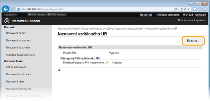 Nastavení kódu PIN pro Vzdálené uživatelské rozhraní