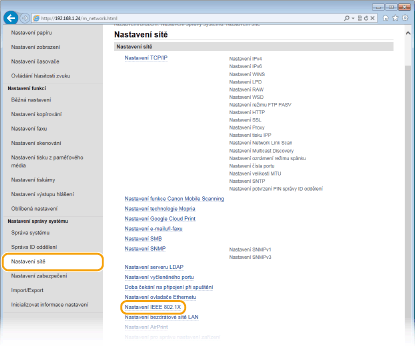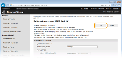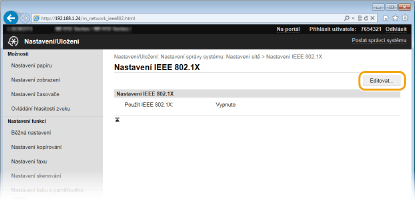 Pomocí možnosti <Nabídka> na obrazovce <Domů> také můžete povolit nebo zakázat ověřování IEEE 802.1X. Nastavení IEEE 802.1X