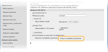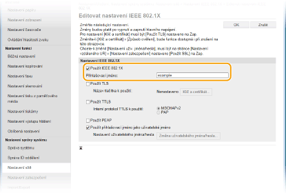 Zaškrtněte políčko [Použít IEEE 802.1X], do textového pole [Přihlašovací jméno] zadejte přihlašovací jméno a zadejte požadovaná nastavení.