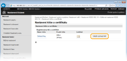 Klikněte na tlačítko [Uložit výchozí klíč] napravo od páru klíčů, který chcete použít pro ověřování klienta.