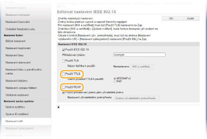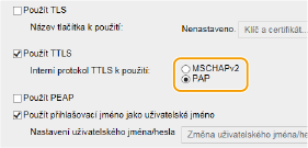 Zaškrtněte políčko [Použít TTLS] nebo [Použít PEAP].