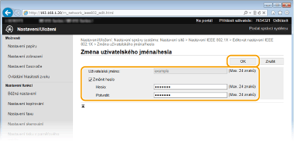 Nastavte uživatelské jméno či heslo a klikněte na možnost [OK].