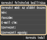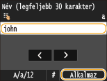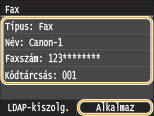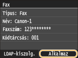 ![]() Ha a <Keresés indul> gomb megérintése után megjelenik a hitelesítési képernyő, akkor adja meg a készülék LDAP-kiszolgálón bejegyzett felhasználónevét és jelszavát, majd érintse meg az <Alkalmaz> gombot. LDAP-kiszolgálók bejegyzése