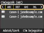 gombot, majd érintse meg a <Címjegyzék> gombot.