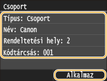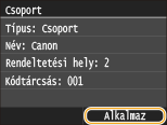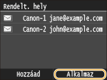 Ismételje meg a 7. – 9. lépést mindaddig, amíg minden bejegyezni kívánt címet be nem jegyzett, majd érintse meg az <Alkalmaz> gombot.