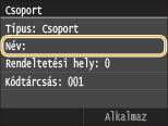 Írja be a nevet a számbillentyűkkel, és érintse meg az <Alkalmaz> gombot.