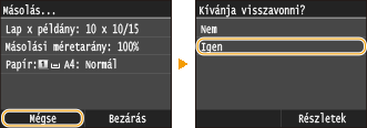 gomb megnyomása után meg szeretné szakítani a másolást, akkor érintse meg a <Mégse> gombot a kijelzőn, vagy nyomja meg a