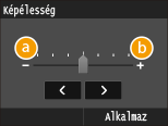 Beállíthatja a másolt kép élességét. Elmosódott szöveg és vonalak élesítése céljából növelhető, az újságfényképek megjelenésének javítása érdekében pedig csökkenthető az élesség.