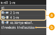 A <2-ről 1-re>/<4-ről 1-re> lehetőség használatával a másolási arány automatikusan csökkenthető (a másolási arány megjelenik a képernyőn). A