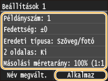 Módosítsa a bejegyezni kívánt beállítások értékét, és érintse meg az <Alkalmaz> gombot.