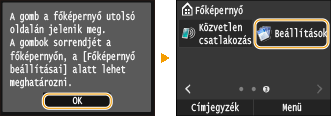 Ha a Főképernyő megtelt, és a gombot nem lehet hozzáadni, a <Főképernyő beállításai> segítségével töröljön bejegyzett gombokat vagy térközöket a képernyőről.