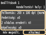 Beállítás szerkesztéséhez:Válassza ki a szerkeszteni kívánt beállítást  módosítsa a beállítást  érintse meg az <Alkalmaz>  <Igen> gombot.