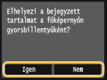 Ha az <Igen> lehetőséget választja, megjelenik egy üzenet. Olvassa el az üzenetet, majd érintse meg az <OK> gombot. A bejegyzett beállításkombináció egy gyorsgombként felkerül a Főképernyő felültére.