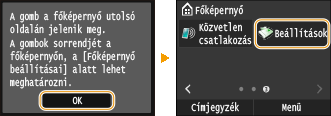 Ha a Főképernyő megtelt, és a gombot nem lehet hozzáadni, a <Főképernyő beállításai> segítségével töröljön bejegyzett gombokat vagy térközöket a képernyőről.