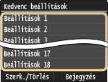 Ha szerkeszteni vagy törölni kíván egy bejegyzett beállítást, válassza a <Fax>  <Kedvenc beállítások>  <Szerk./Törlés>  <Szerkesztés> vagy <Törlés> lehetőséget, és kövesse az alábbi lépéseket.