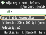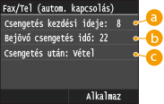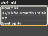 Beállíthatja, hogy a készülék a bejövő hívás megadott ideig tartó kicsengése után automatikusan fogadja a faxokat. Kapcsolás automatikus vételre