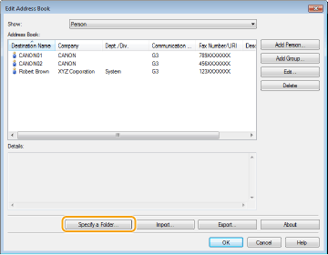 A Címjegyzék adatainak tárolási mappája tetszőlegesen módosítható. Ha a Címjegyzék mappájához nincs hozzáférése, akkor nem tudja használni a Címjegyzéket. Ilyen esetben módosítsa a Címjegyzék mentési helyét.