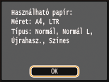 Ellenőrizze, hogy a készülékbe a megjelenített méretű és típusú papír van-e betöltve, majd érintse meg az <OK> gombot.
