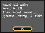 Ellenőrizze, hogy a megjelenített papírméret és -típus egyezik-e a készülékbe behelyezett papíréval, és érintse meg az <OK> gombot.