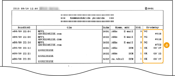 Ha hibakód jelenik meg). Az e-mailek esetében azt jelzi az átvitelkezelési jelentés, hogy mi volt az átvitel eredménye a készülék és a levelezőkiszolgáló között, nem azt, hogy eljutott-e az e-mail a megadott címre.