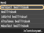 A hálózattal kapcsolatos felsorolásban minden beállítás megtalálható egy-egy rövid leírással. Az alapértelmezett beállítások mellett a (