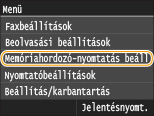 Az adathordozóról való nyomtatással kapcsolatos felsorolásban minden beállítás megtalálható egy-egy rövid leírással. Az alapértelmezett beállítások mellett a (